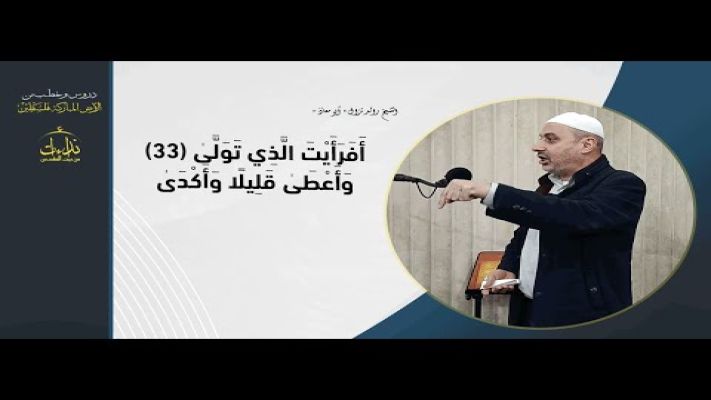 كلمة المسجد | الأرض المباركة | فلسطين | قلقيليةأَفَرَأَيْتَ الَّذِي تَوَلَّىٰ 33 وَأَعْطَىٰ قَلِيلًا وَأَكْدَىٰالشيخ رائد نزال أبو معاذ