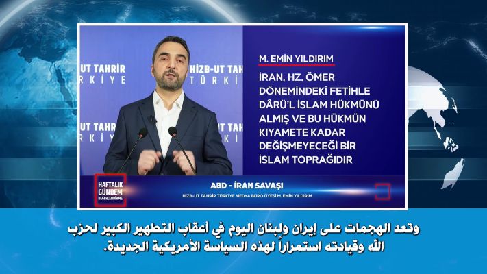 ولاية تركيا: اللقاء الإعلامي الأسبوعي 10/03/2026ماللقاء الإعلامي الأسبوعي للمكتب الإعلامي لحزب التحرير في ولاية تركياتقديم الأستاذ محمد أمين يلدريمعضو المكتب الإعلامي لحزب التحرير في ولاية تركياوقد تناول فيه هذا الأسبوع:- الحرب الأمريكية – الإيرانية!- ...